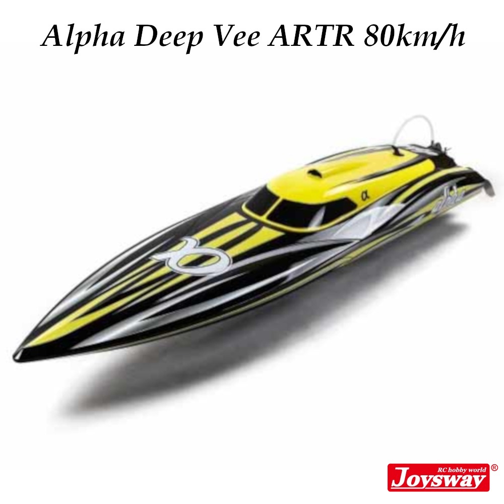 The Joysway Alpha Super 1000 Brushless Deep Vee ARTR RC Speed Boat is a large and extremely powerful deep vee RC speed boat designed for maximum performance on open water. With its impressive 1060 mm hull and high-performance brushless system, it can reach speeds up to 80 km/h, delivering true high-speed excitement.