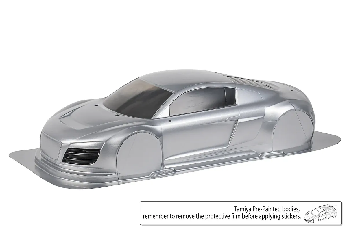 The Tamiya Audi R8 LMS 2008 (TT-02) is a classic GT3 race car in 1/10 scale, combining timeless design with reliable performance. This limited edition includes a pre-painted body (silver/black with smoked windows), making assembly quick and easy. Built on the TT-02 4WD chassis, it delivers stable handling and smooth driving performance for both beginners and experienced R/C enthusiasts.