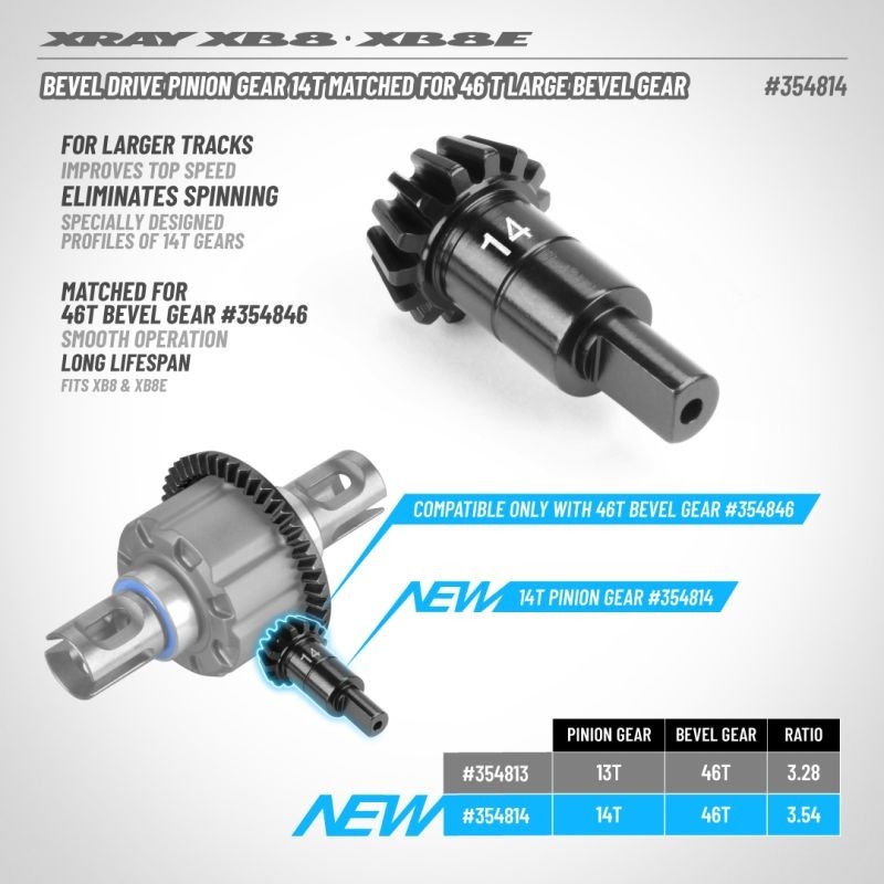 Xray Bevel Drive Pinion Gear 14T – Matched For 46T Large Bevel Gear