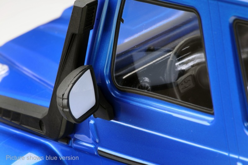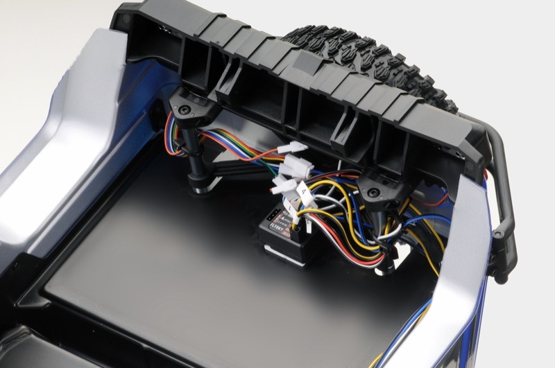 The completely redesigned tubular chassis offers many advantages! All electronic components are easily accessible, which is crucial considering the amount of technology packed into the device! Thanks to the extremely low "LCG" chassis and the matching gearbox, the center of gravity is lower, which is especially useful for high-body concepts like our WOLF. The battery box is located in the middle and can be perfectly adapted to all 2-3S LiPo and 6-7-cell NiMH batteries thanks to the Velcro fastener and adjustable holder. An 11-channel remote control is required to control all technical functions. The 3-in-1 ESC/receiver and lighting unit are kept separate to offer the pilot all the options for future optimization/tuning.